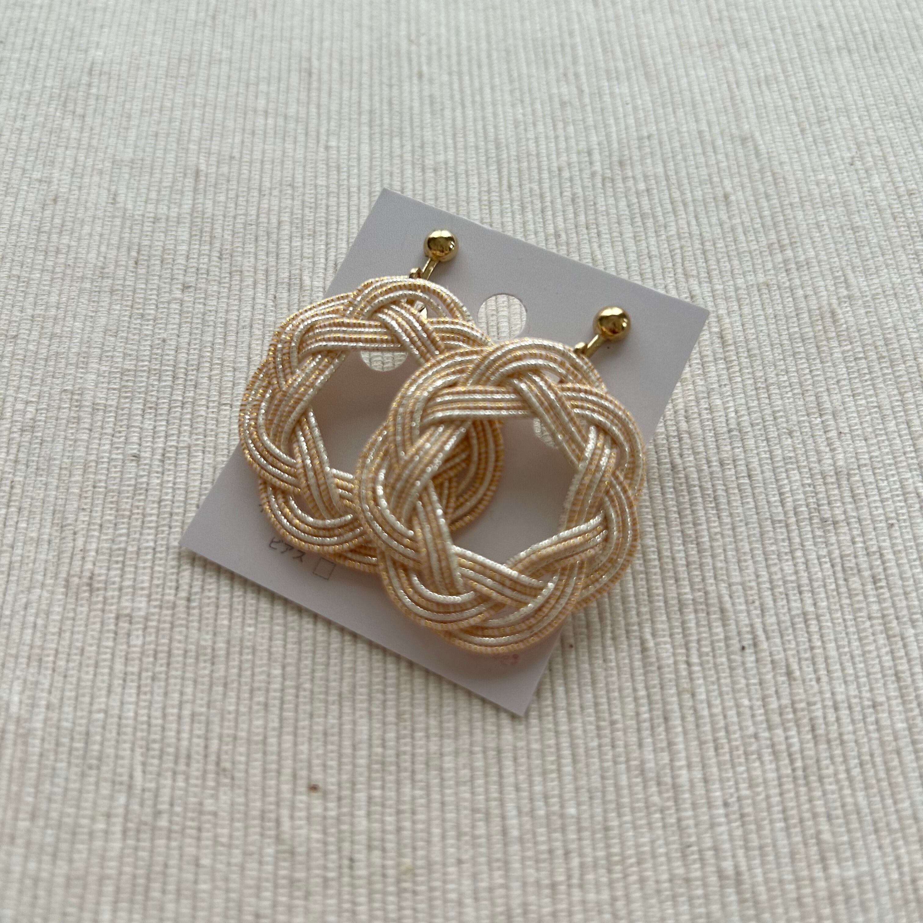 水引を交差しながら作っているので大ぶりの割に重くないアクセサリー。