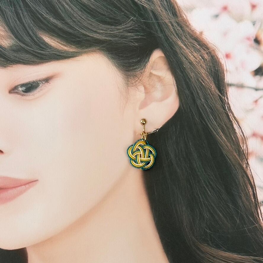 【Blue&Yellow/イヤリング】梅結び風アクセサリー